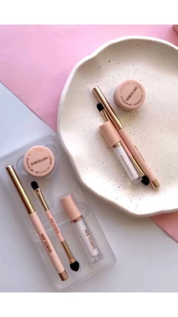 :خط لب پیچی،براش،چسب لب و گلیترپودری.